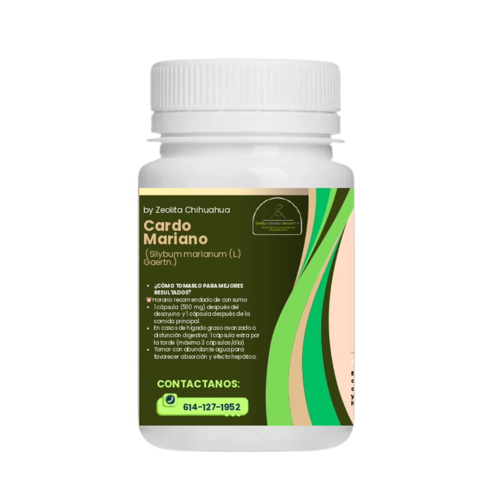 Presentamos el suplemento de Cardo Mariano (Silybum marianum L. Gaertn.), la hierba más reconocida a nivel mundial por su capacidad para proteger, desintoxicar y regenerar la función hepática. Este producto, ofrecido por Zeolita Chihuahua, es esencial para el cuidado del hígado y la optimización de la función digestiva.